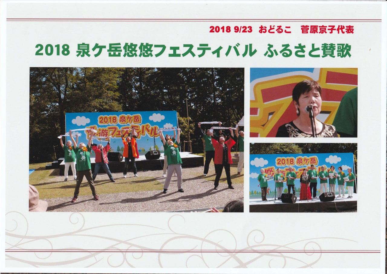 歌と音楽健康体操教室を毎週月曜日午前10時~12時まで1回500円で音楽健康体操をカラオケスタジオ"おどるこ"にて開催。参加者も多く盛り上がっています。泉区の泉ヶ岳フェスティバルや泉区の行事や老人クラブなどでの懐メロ合わせて歌と体操で推進されていること等が高く評価されたのです。